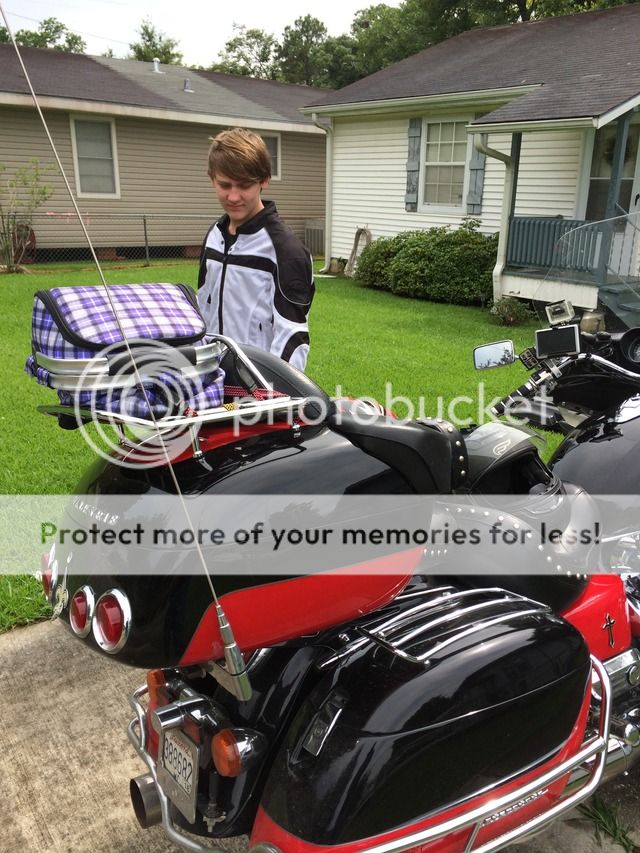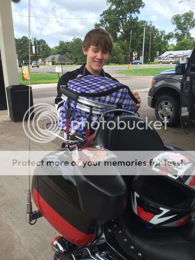 So, after he threw his trash bag with a change of clothes in the saddlebag - yep, he is a biker. You gotta love a boy who throws his change of socks into his Rain Gear - he carried the same kind of trash bag I do. Let's truck on brother!!!!