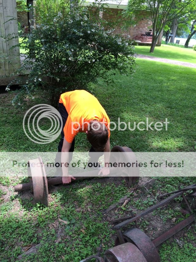 Hey Paw Paw, I have been working out, if I lift these railroad wheels, can we throw them in the trunk of the bike? I could use these with my lift bench at the house.....