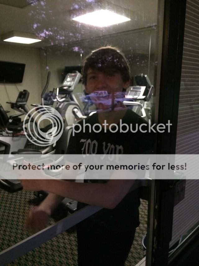 Only thing that was left was getting locked into the fitness room, calling Paw Paw to come and insert the room card from the outside to let him out after he slipped a dollar under the door.....