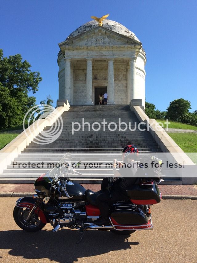 The next morning after some free waffles in the lobby, we bungeed the coats to the back of the bike and shot across the street to Vicksburg Military Park.