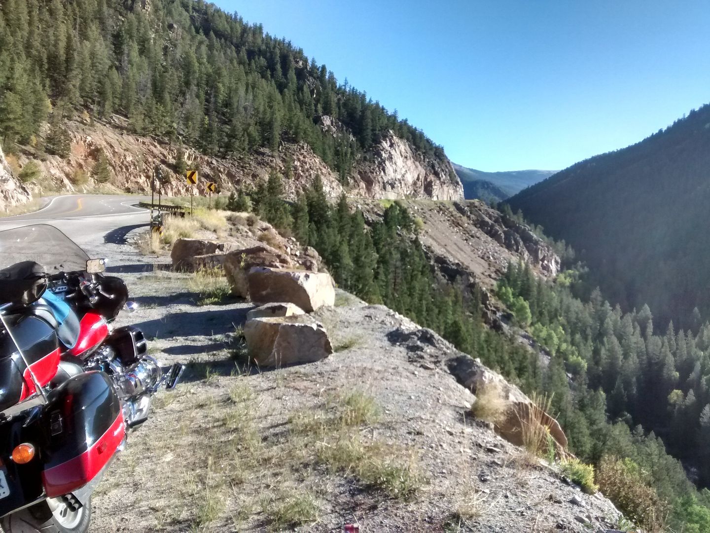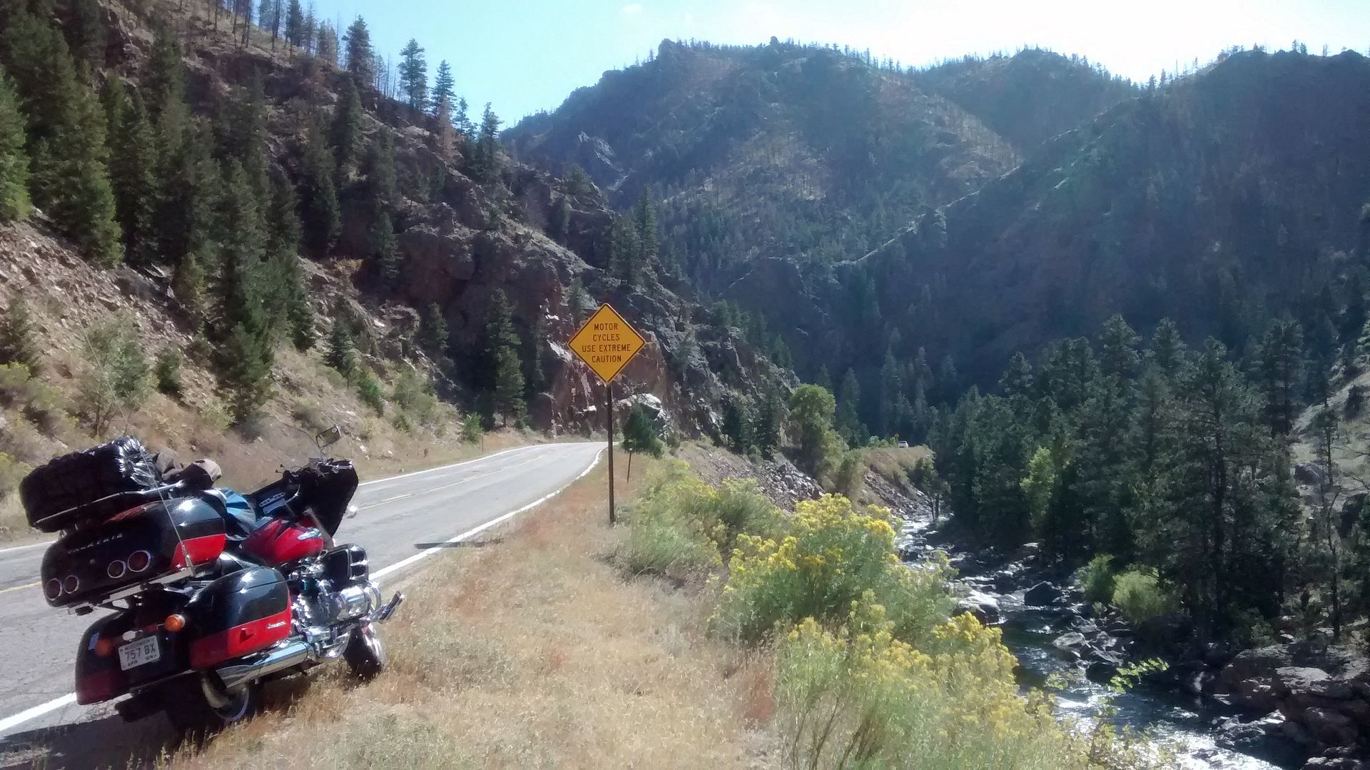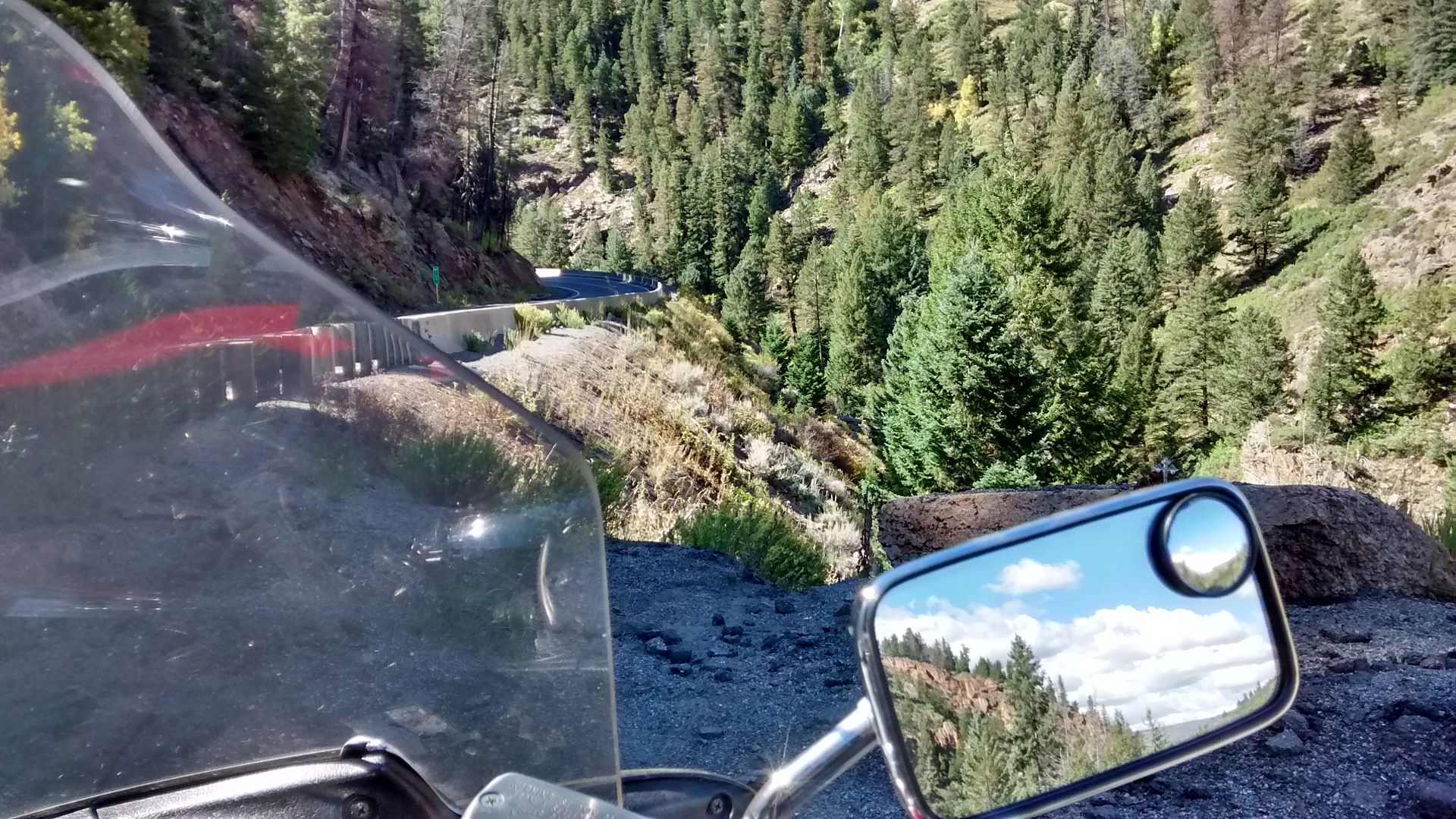 The bike was an absolute dream in the mountains and I cannot imagine a better way to experience these roads.  I have lived in Lake Tahoe and Steamboat Springs and been through the Rockies on lesser vehicles numerous times and this time around it was shear pleasure.  The 1520 cc's are fun to have in everyday driving but really came into their own out here.  In fact power delivery is so smooth and the torque curve so flat that I often did not even know I was climbing until cresting a rise.  Fuel economy once again was encouraging, rising from the dismal 20 of Nebraska to 29 mpg here with spirited riding.  No hypermiling for me!