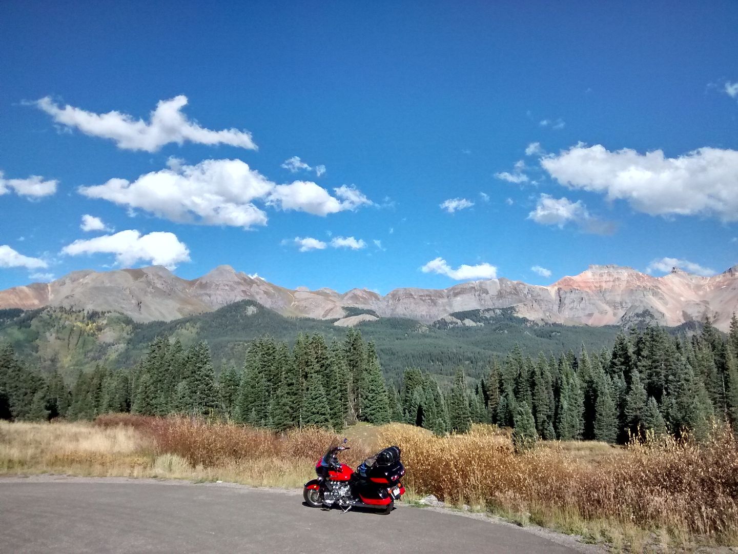 great pics... super trip...I lived in Colo. for 11 years and rode many of the mountain roads with the club I belong to then... after 2012 Stirgis I took my brother ,who had never rode a bike in the mountains on a 4 day ride the what I thought was some of the best vista and site roads... He loved it, make the roads we ride now, that Im back in northern Ill,and southern Wisconsin,seem boring, but after 47 years Im still riding and expect to for several years to come.... Maybe next year Ill take one of those shoe string trips and go see my daughter and grandson again back in Colorado....