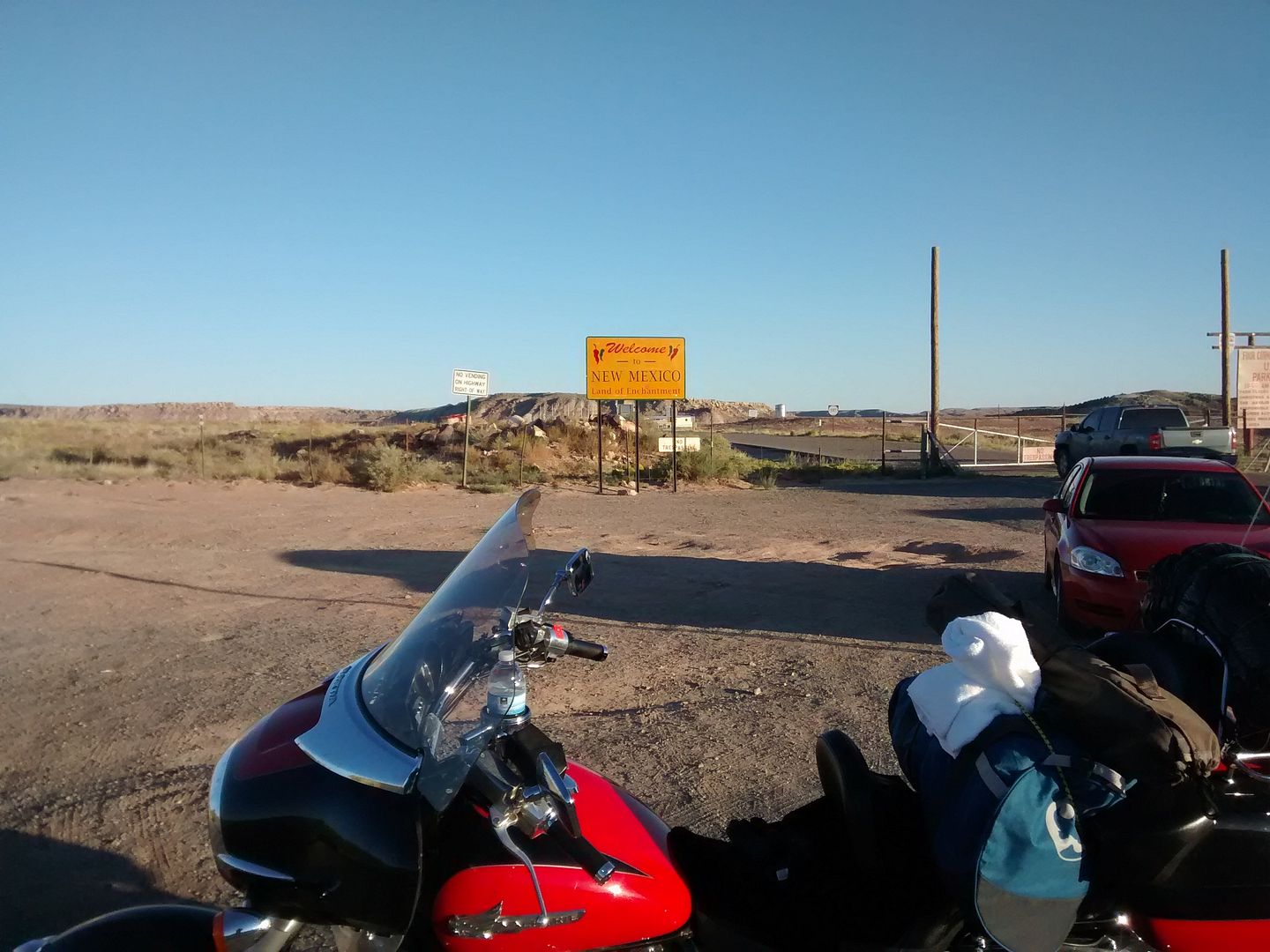 Day one, Tuesday September 15th nearly ended the whole trip.  Heading straight into a near steady 30 mph wind I stopped early to adjust my earplugs and tend to a rapidly dropping fuel gauge.  I had pulled the carbs and replaced the jets with 38 slows and 105 mains a couple of weeks earlier, and noted the mileage had dropped 10% but it was running so well decided not to worry about it.  However the first fill up, running 75 - 80 mph into that headwind, was 22 mpg and made me nervous.  Later that day she hit the trip low of 20.   Cry