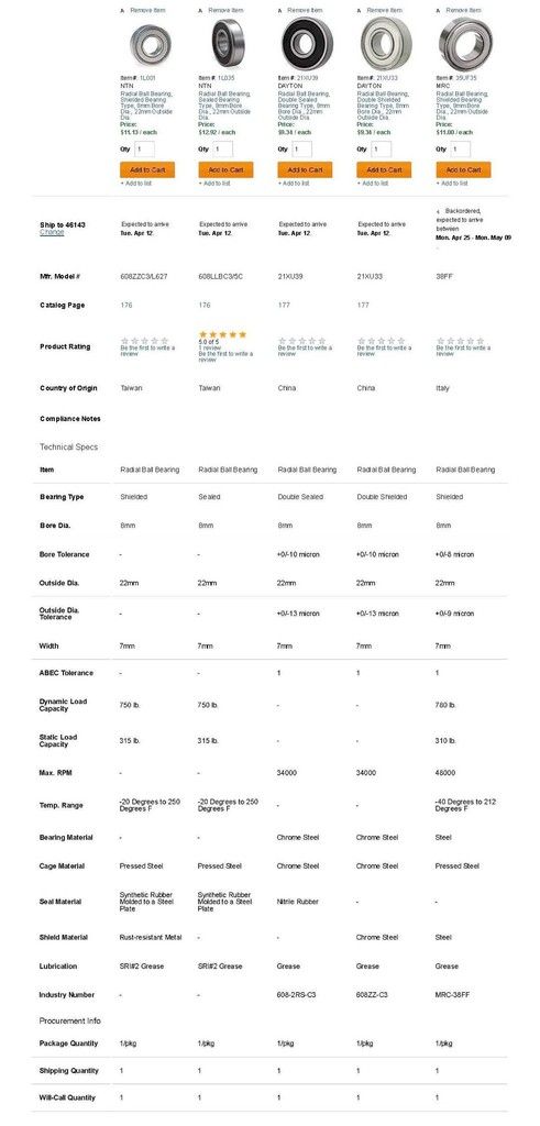 Any input would be appreciated. Photos below show the location of the failed bearing and comparison from Grainger (if you can read the print that small).