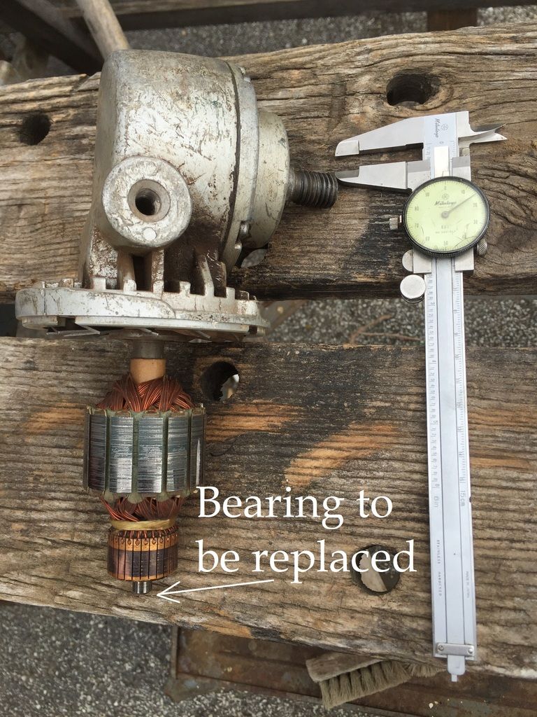 I have a 35 year old Skil 7 inch angle grinder. Had a bearing go out yesterday. I measured the bearing as 8mm ID, 22mm OD, and 7mm wide. I looked at the Grainger web site and found 5 matching that size. They are all radial ball bearings (it was a ball bearing that failed). Choices include shielded, double shielded, sealed, double sealed, steel or chrome steel, etc. I'm not sure what the differences are. I actually assume any would likely work. The prices run from $9 to $13 dollars, but shipping is $11, so will probably order from somewhere else.