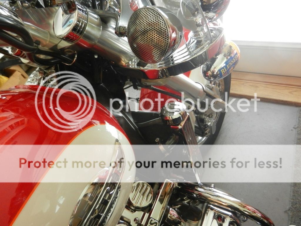 Cobra should be paying you for your supporting them! Looks awesome! My rad cap has a temperature gauge on top so I was wondering about yours. Thanks for posting the photos ....... with the amount of dust on your bike, I'm wondering if you actually ride it!!  Not much, I only have put 145,000 miles on her.......... Well done! Obviously you carry a bag of rags.