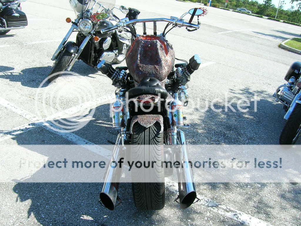 Thats a wild bike. Wonder how he mounted the tanks ? I watched him ride that bike. He mounted the saddle just like anyone else. Tigger was a little big to be sitting on the tanks.  Boy, you have to be SO precise with comments around here! [Says the pot to the kettle.]