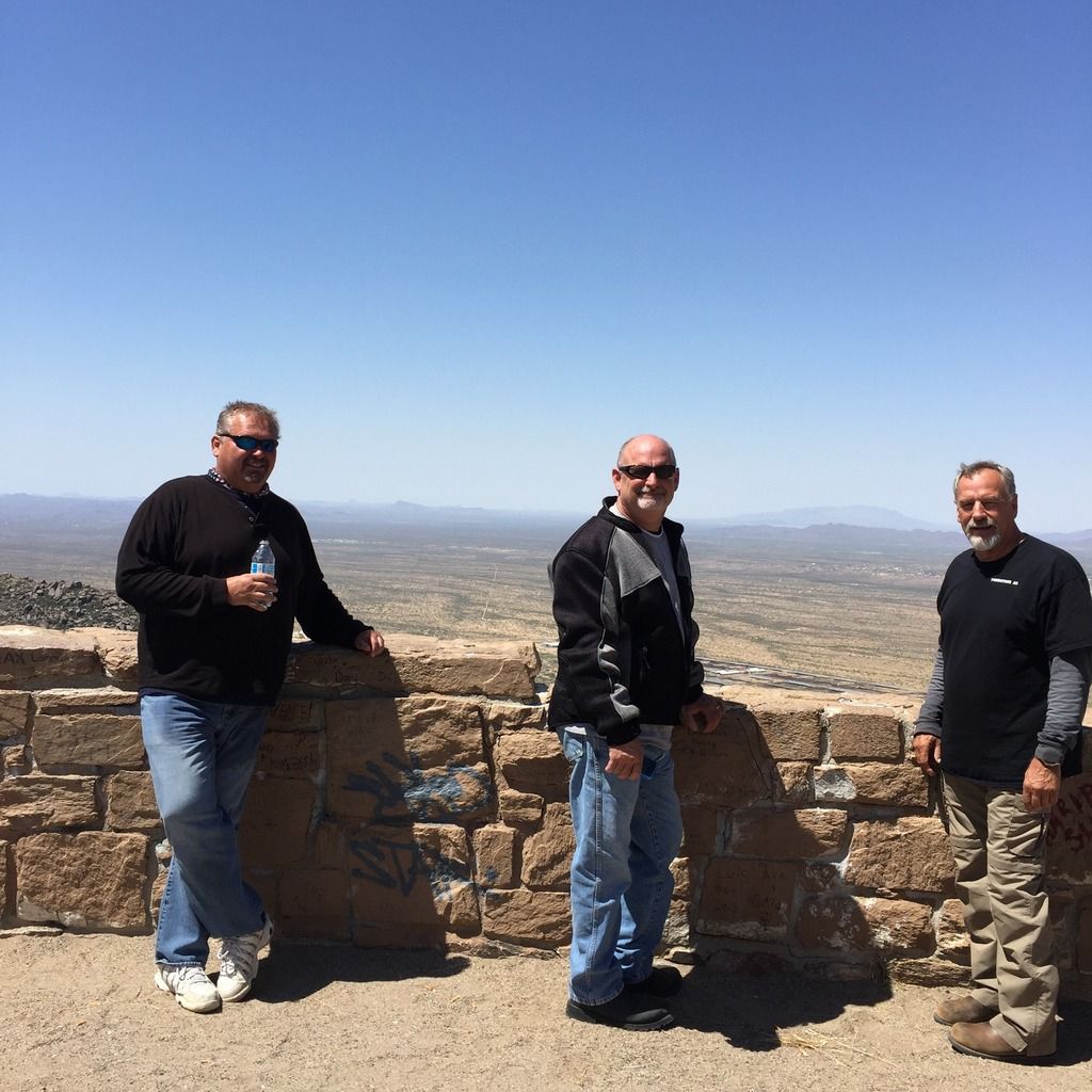 Then the real fun began. 150 miles across the desert at 115*. Everything was going about as good as could hoped for until the couple that were visiting from Tennesee ran over something and cut the rear tire. 25 miles from home on the hiway shoulder.