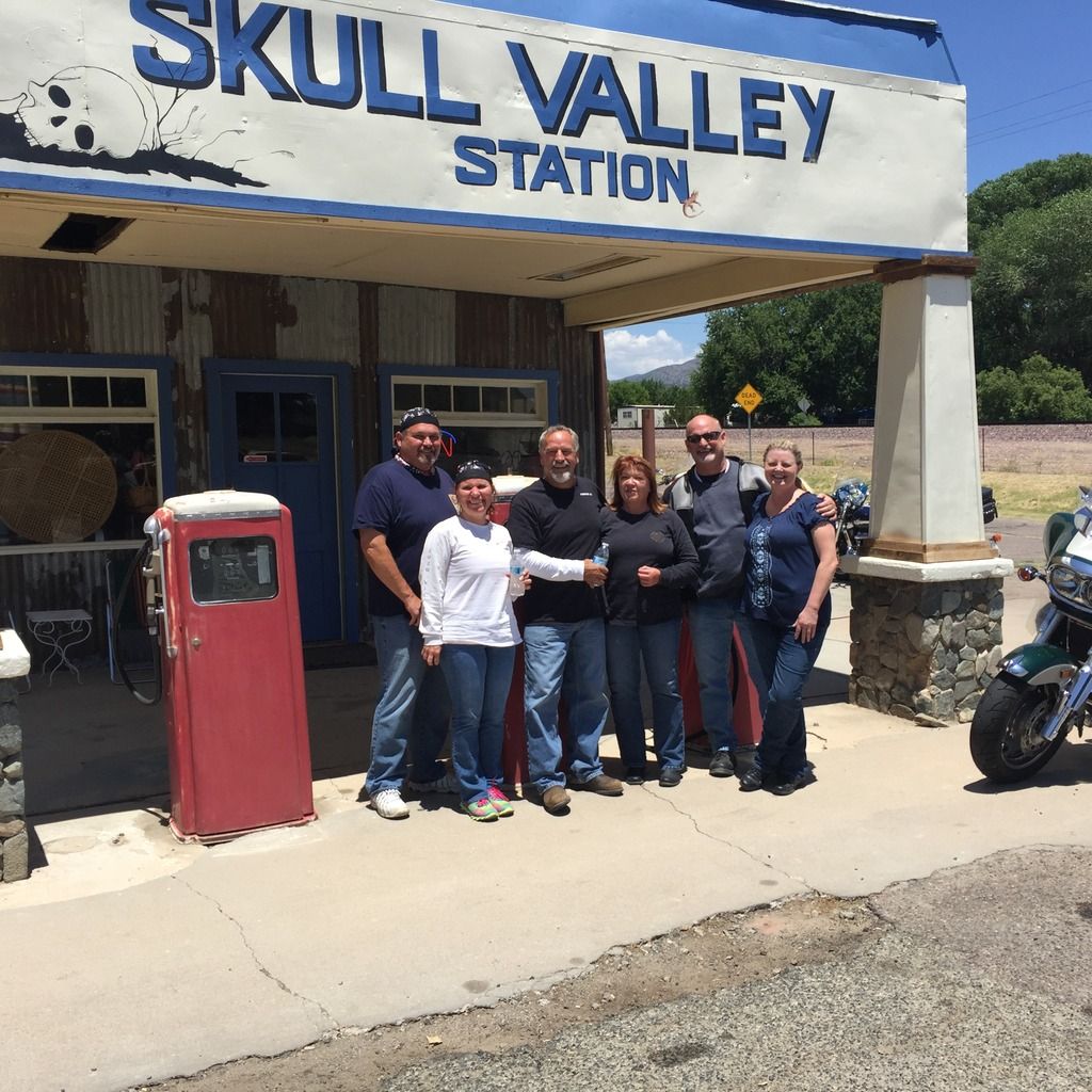 Us and 2 other couples headed out to Prescott in a roundabout journey. We had breakfast at the Hualapai Mtn. Lodge. Then headed towards Wikieup and Bagdad. By this time it was up to 110* but I pulled my trailer with 100 lbs. of ice and water. After Bagdad we headed towards Prescott by way of Skull Valley.