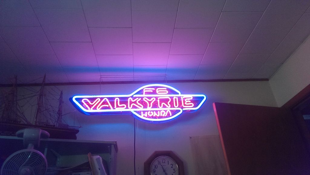 Thanks all, and that teal and black looks sharp! How about this perk, for the man-cave. Came with the bike, along with helmet intercoms, a tank bib and a couple of seat sheep skins...:  Ahhh, the coveted neon sign. Sharp looking bike you have there as well. When I get back from holidays in the Kootenays in a couple weeks, I'll shoot you a PM next time I'm out through Hope. Cheers, Mike