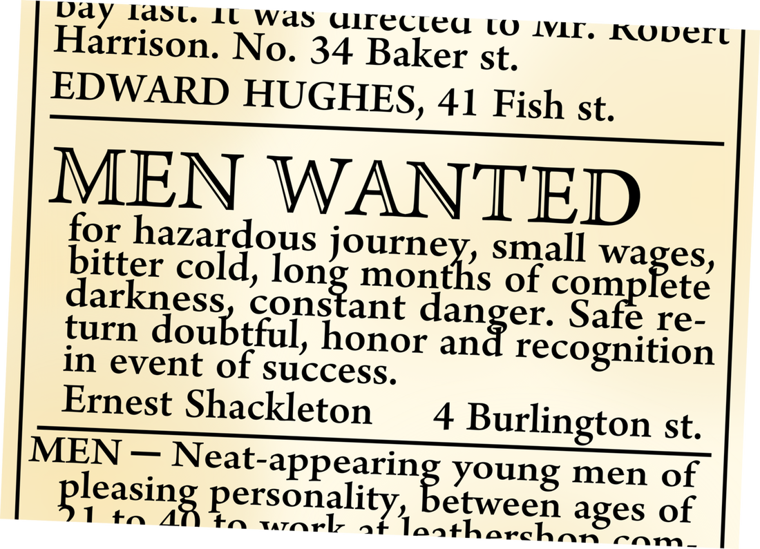 but Shackleton's Ad (myth or not) still hangs on my wall...